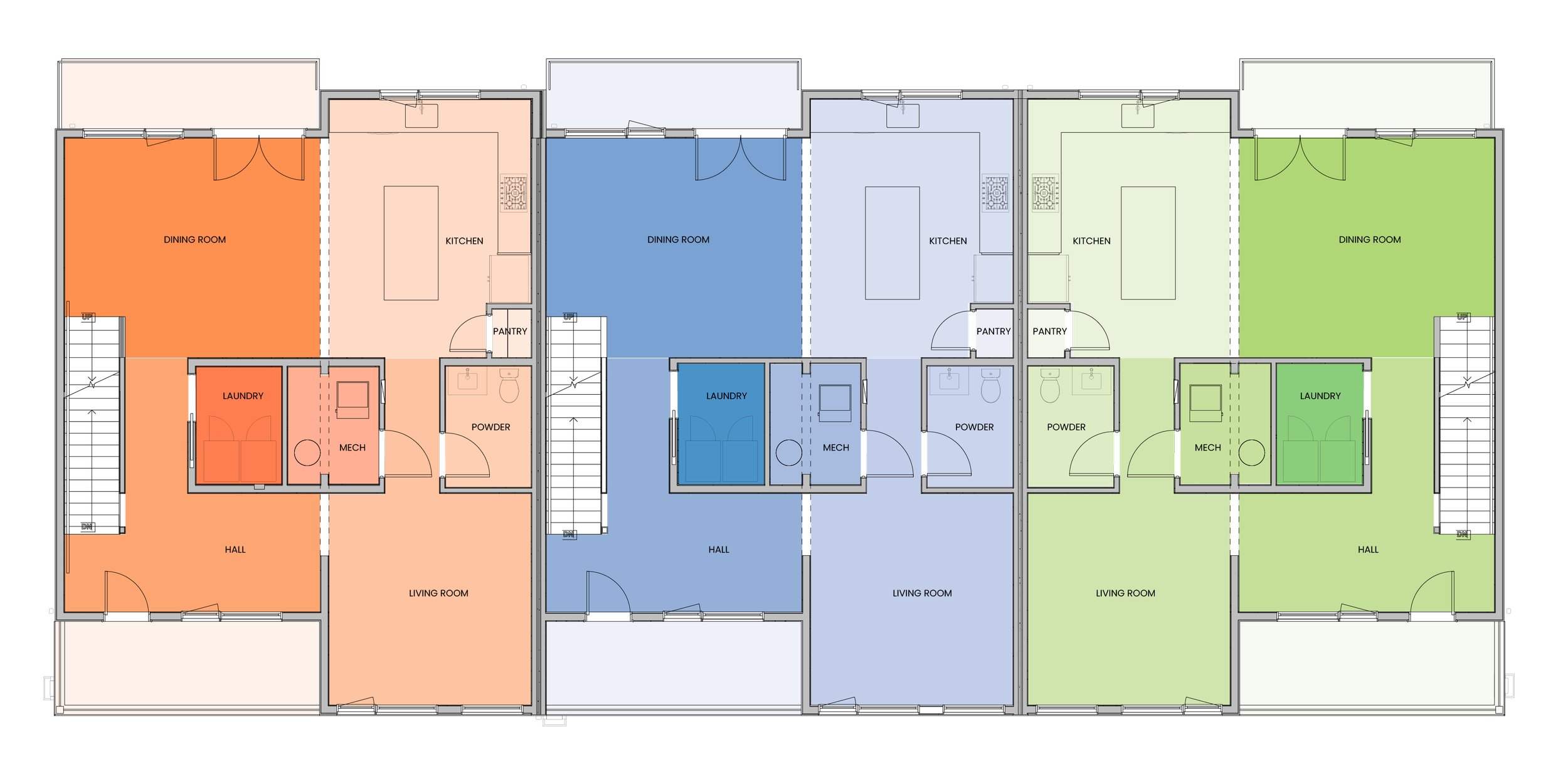 Three 3-story Townhomes with attached garages